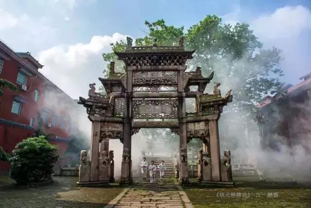 状元桥位于中轴线上,麻石结构单孔拱桥。长8.6米,宽3.20米,拱券跨3米;桥面踏步21级(南10级,北11级),两侧装勾栏,每侧各7块,内容、做法与泮池护栏类同,亦为杨氏兄弟所为。