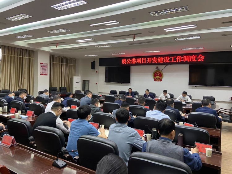 10月19日上午,县长刘世奇调度虞公港项目开发建设工作。县委常委、副县长罗奇,县政府办主任王锐参加。