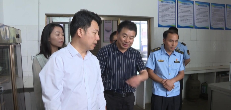 邓淼一行来到学校食堂,实地查看食堂资料台账、餐厅环境卫生、原料贮存和食品样品留存等情况,对督导中发现的问题,现场交办并提出整改意见。