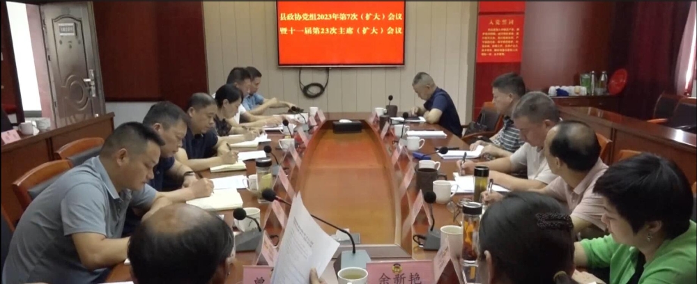 7月26日,县政协主席杨革新主持召开县政协党组2023年第7次(扩大)会议暨十一届委员会第23次主席(扩大)会议。县政协副主席黄新凯、甘文伟、熊国庭、周学斌、胡莎丽参加。