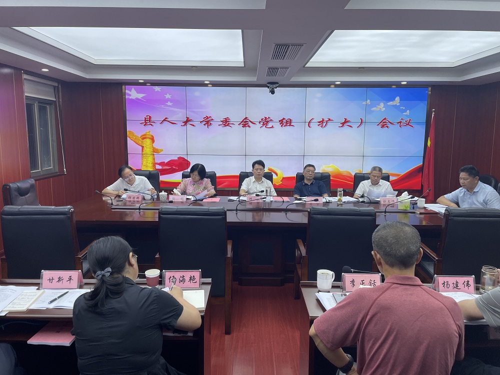 8月24日,县人大常委会主任邓淼主持召开县人大常委会党组(扩大)会议。县人大常委会副主任甘政、陶娜、刘志伟、邵凿耕,办公室主任郑剑参加。
