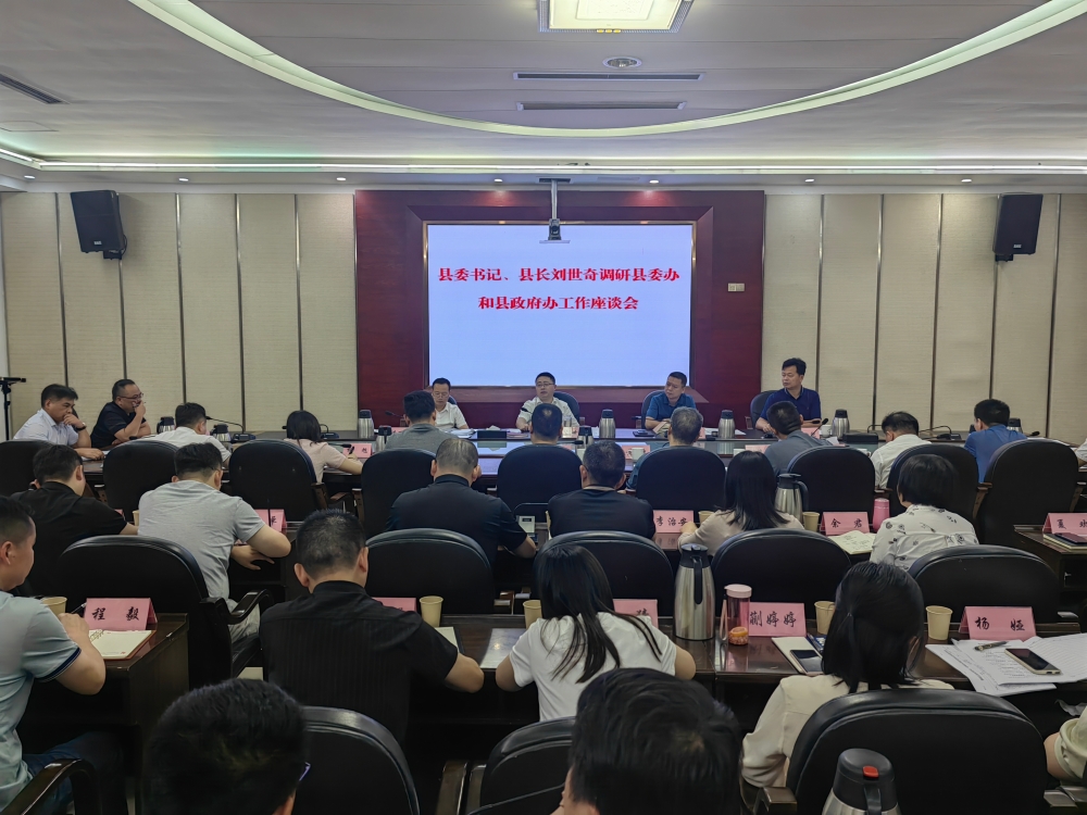 6月3日,县委书记、县长刘世奇到县委办和县政府办调研座谈。县委常委、组织部部长徐春光,县委常委、统战部部长黄万坤,县政府办主任王锐参加。