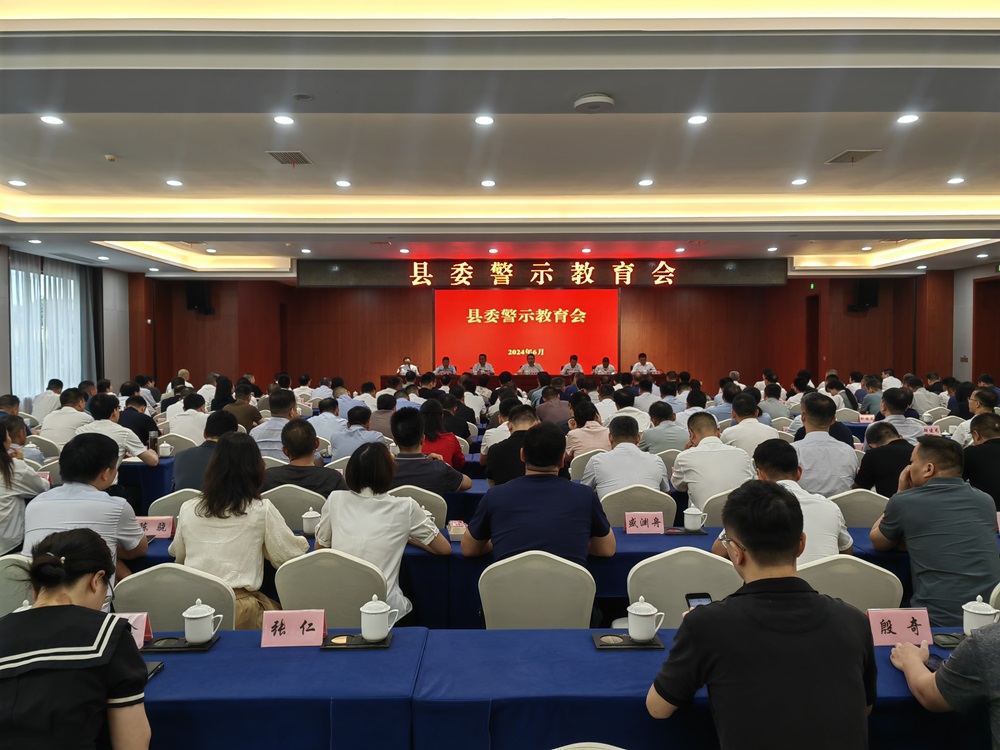 6月20日,县委警示教育会召开。县委书记、县长刘世奇主持并讲话,强调要深入学习贯彻习近平总书记关于全面加强党的纪律建设的重要论述精神,以案为鉴、以案明纪、以案释法,用身边事教育身边人,不断净化全县政治生态,着力为湘阴高质量发展提供坚强保障。县人大常委会主任邓淼及全体在职县级领导参加。