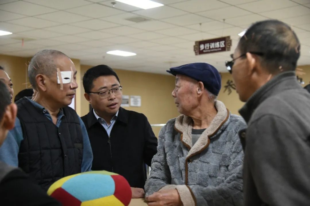 ▲刘世奇在县中医医院与患者亲切交流,询问身体康复、医院服务等情况。