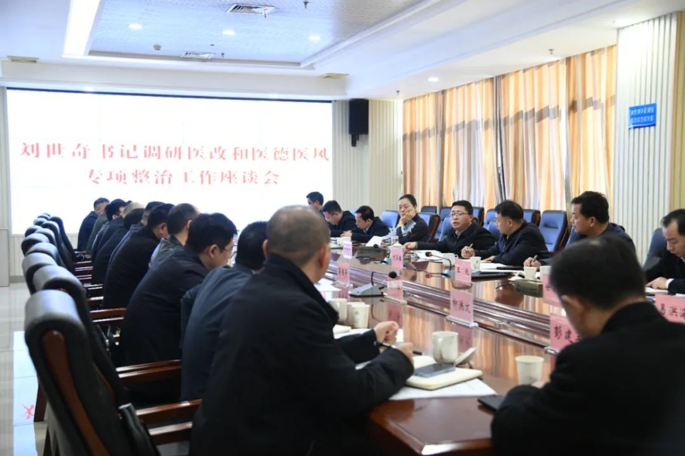▲刘世奇在县人民医院召开专题座谈会调研全县医改和医德医风专项整治工作。