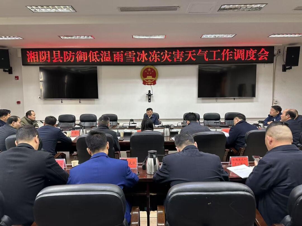 会议听取了县气象局对最近一轮低温雨雪冰冻天气的情况通报,分析研判低温雨雪冰冻灾害天气形势;县应急管理局解读了《湘阴县低温雨雪冰冻灾害应急预案(试行)》,并就各项防御应对措施、当前存在问题及下一步工作进行部署安排。