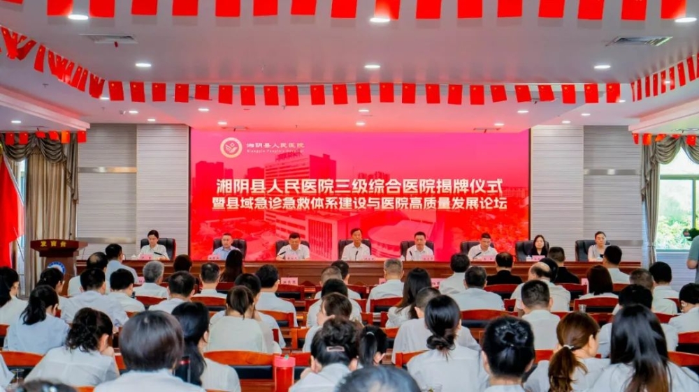 仪式上,严素宣读了省卫健委《关于确认湘阴县人民医院为三级综合医院的通知》,与会人员共同为三级综合医院揭牌,标志着我县医疗卫生事业迈入高质量发展新阶段。在高质量发展论坛上,祝益民、赵卫华等知名专家围绕《三大中心建设与学科发展》《县域医院高质量发展的思考》《基层医院科研思路和学科建设》等主题展开精彩授课,为全县医疗工作者提供前沿的学术指导和实践经验分享。