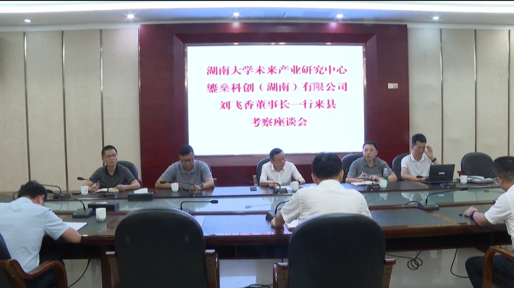 6月6日,全国人大代表、湖南大学未来产业研究中心主任、鎏燊科创(湖南)有限公司决策委员会主任刘飞香来我县考察。县委副书记、县长张永久,县高新区党工委书记焦洪桥,县政府办主任范文灿参加。