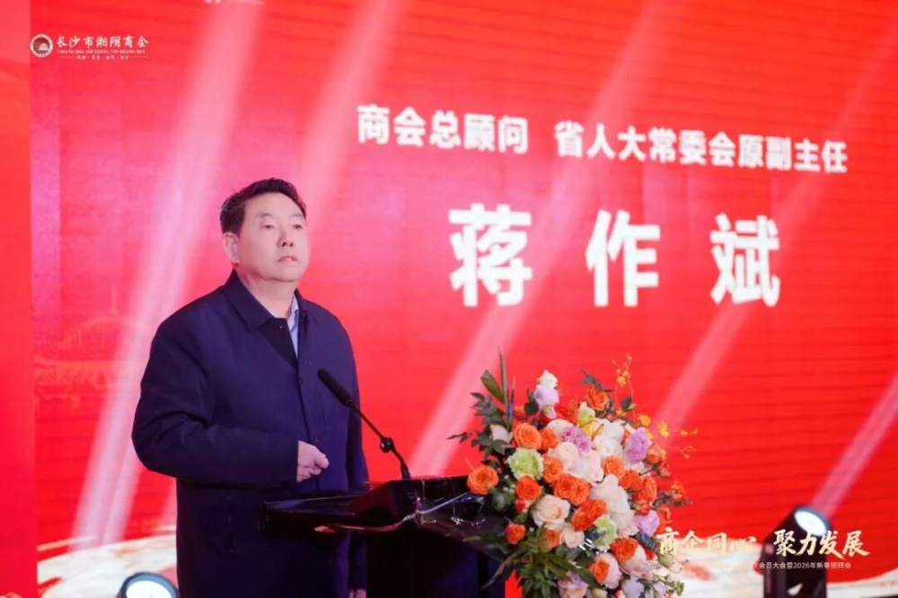蒋作斌在讲话中指出,湘阴区位优势突出、发展潜力巨大,必须抢抓机遇、发挥优势、补齐短板,持续夯实发展基础。要立足湘阴临长通江、拥湖达海的独特条件,积极融入长株潭一体化进程,加快完善交通基础设施体系,科学布局“十五五”发展路径。要以“咬定青山不放松”的战略定力,坚定信心、保持恒心、秉持耐心,在发展中正视挑战、把握机遇、放眼长远,稳步推动湘阴在高质量发展道路上不断取得新突破。希望长沙市湘阴商会进一步强化组织建设、提升服务水平,切实发挥好桥梁纽带作用,积极促进政企联动、产业协同和乡情融合,为推动湘阴经济社会发展汇聚更多力量、作出更大贡献。