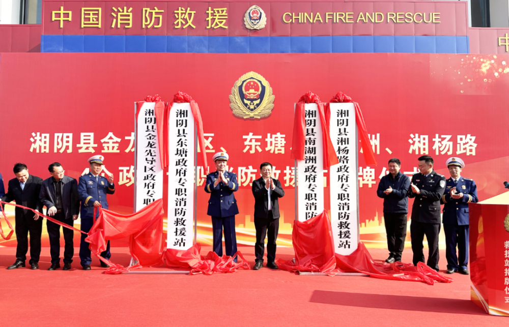 1月15日,我县举行金龙先导区、东塘、南湖洲、湘杨路4个政府专职消防救援站揭牌仪式。市消防救援支队支队长谷臣凯,县委副书记、县长张永久,副县长、县公安局局长胡光志,县政府办主任范文灿出席活动。