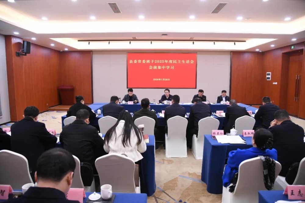 1月28日,县委常委班子举行2025年度民主生活会会前集中学习。县委书记刘世奇主持并讲话,县委副书记、县长张永久,县人大常委会主任邓淼,县政协主席杨革新及相关县领导参加。