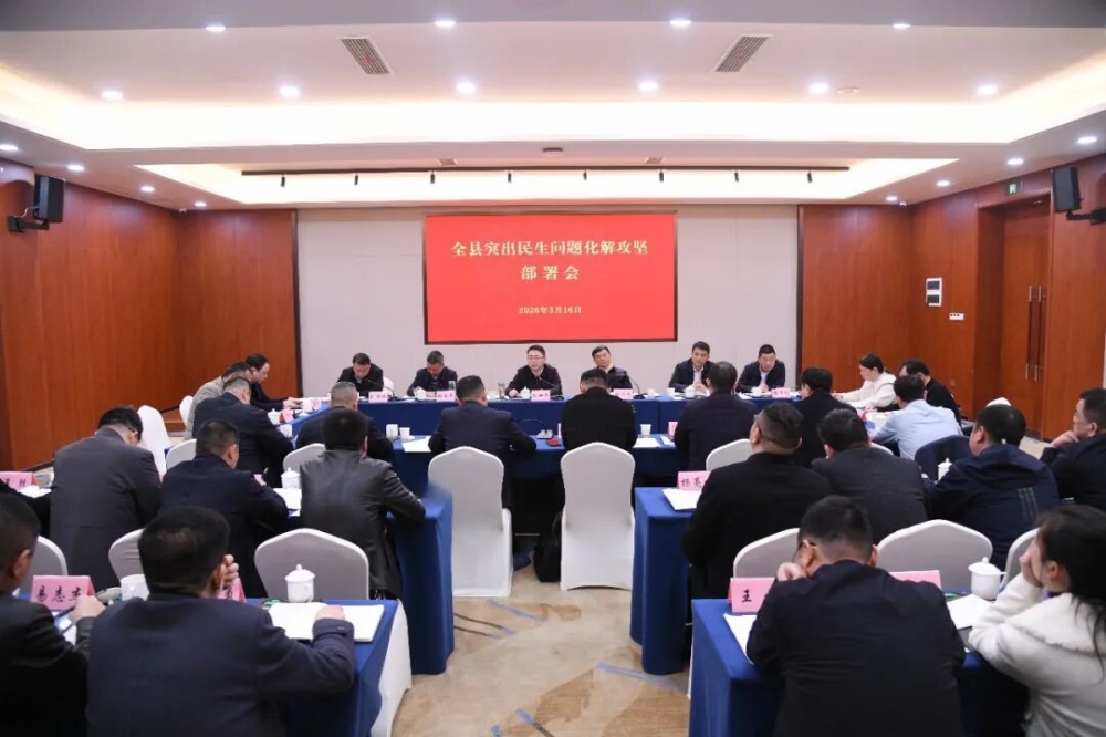 3月16日,县委书记刘世奇主持召开全县突出民生问题化解攻坚部署会。县委副书记、县长张永久,县级领导徐春光、姜华、刘界雄、陈学礼、胡光志、秦献鹏、刘江波、周学斌、胡进国、蔡健清等参加。