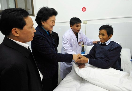 刘延东先后深入鹤龙湖镇血吸虫病防治点、兴隆村卫生室,了解当地血防综合治理工作和健康教育情况,并来到县第三人民医院,看望正在接受治疗的患者巢红伏,勉励他安心养病,好好保重身体。