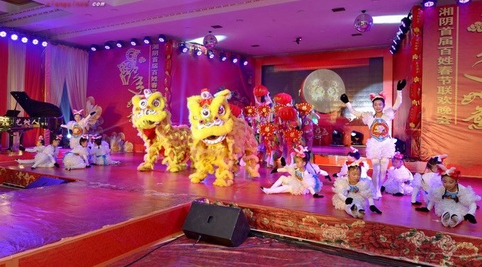 黎作凤、尹培国、闵秀明、熊检华、周义军等在职县级领导、省人大代表、省政协委员、劳动模范、道德模范先进人物代表、文星镇、石塘乡、白泥湖乡、鹤龙湖镇等乡镇群众代表一同观看演出。这是我县第一次在湘阴宾馆宴会大厅,通过多重舞台,以互动的方式,拉近观众与演员距离的一次名副其实的百姓春晚。本届晚会由县文联组织发起,十六个民间艺术团体踊跃参加。