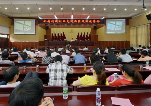 6月26日上午,我县数百名政商界人士汇聚在县委党校大礼堂,聆听全省创新创业先进典型巡回报告。县长尹培国主持报告会。