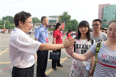 6月7日是2016年全国普通高校招生考试的第一天。今天上午,市政协副主席万五龙,县委书记黎作凤等领导来到湘阴一中、知源学校考点迎接考生,巡视组考工作。副县长甘文伟,县公安局政委余宏一同参加。