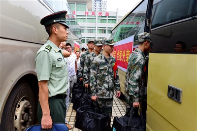 日前,陆续启程奔赴全国各地,开始崭新的军营生活。图为