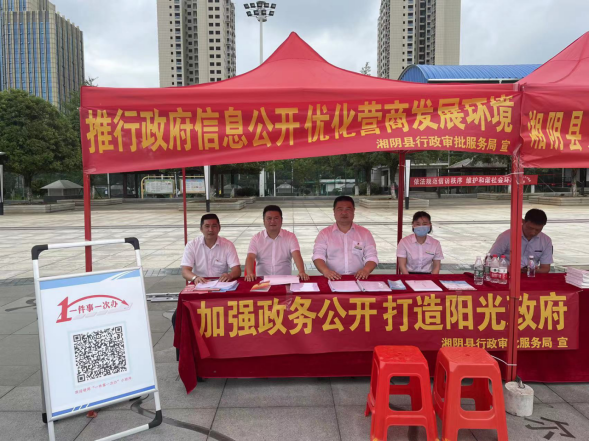 5月31日,湘阴县行政审批服务局在郭嵩焘广场举行“推行政务公开,打造阳光政府”市民宣传日活动。