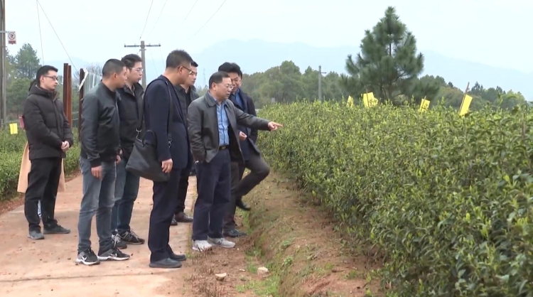 3月25日下午,湖南农业大学副校长方逵率队来我县岳农集团铁香茶业公司调研,省农业科学院装备研究所所长李明一同参加。