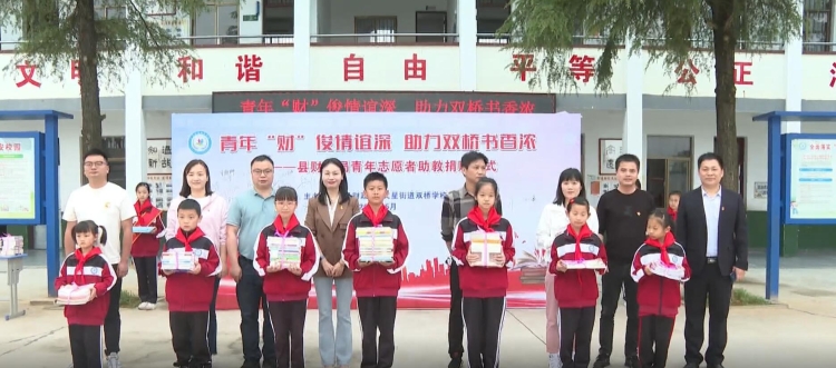 5月8日,县财政局青年干部一行走进文星街道双桥学校开展青年“财”俊情谊深·助力双桥书香浓图书捐赠志愿活动。