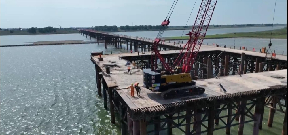 我县樟树港湘江大桥主墩支栈桥完成施工