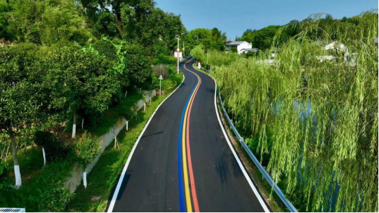 “其实,道路最初设计的颜色就是黑与白。为更好起到旅游带动作用,我们在部分路段试刷了彩色路,没想到被频频点赞,所以就有了这条‘彩虹路’。”湘阴县交通运输局负责人介绍,“天鹅山旅游公路”并不只是在道路中间简简单单画上彩虹分隔线,而是一条生态、文化、旅游、富民的相融之路。