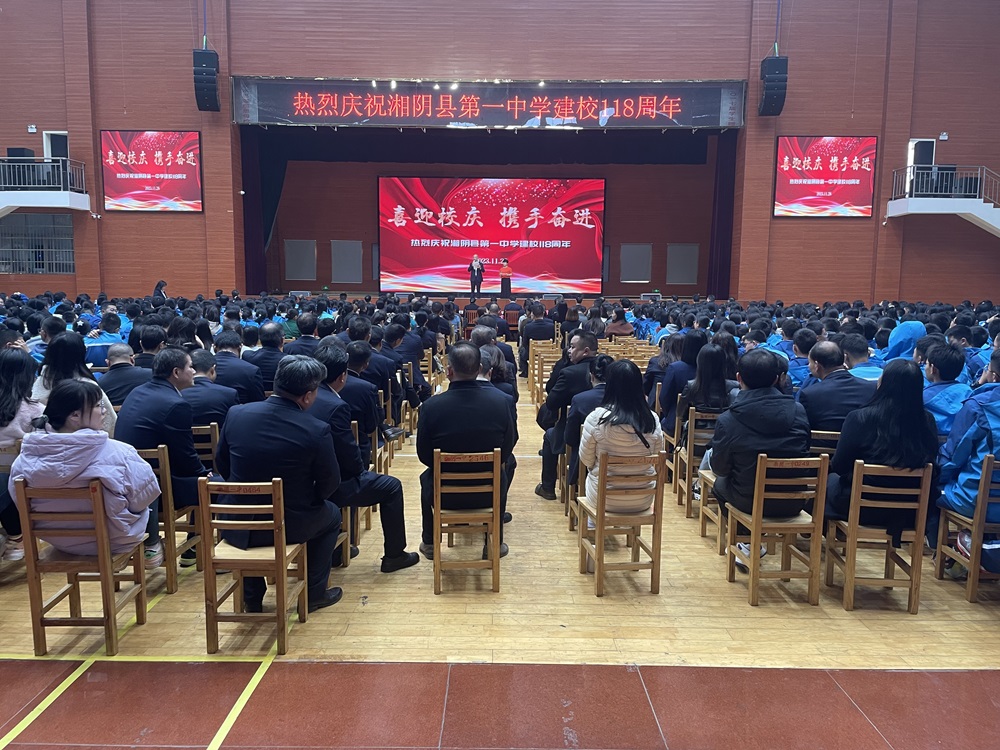 在校庆典礼上,湘阴一中党委书记陈觉民、校长陈宇及学生代表、家长代表、校友代表分别上台讲话,大家回顾过往光辉历史,展望美好明天。