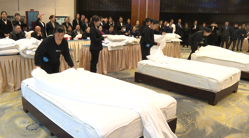 11月30日,县佰嘉丽景酒店举行技能比武创新大赛,赛场上,客房铺床、厨房技艺比拼、酒店接待情景模拟、刀工加配菜比武等9个竞赛项目同场竞技。