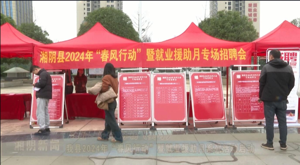2月19日,湘阴县2024年“春风行动暨就业援助月”系列活动在嵩焘广场拉开序幕,70多家企业提供近500个就业岗位,可吸纳4000余人就业。
