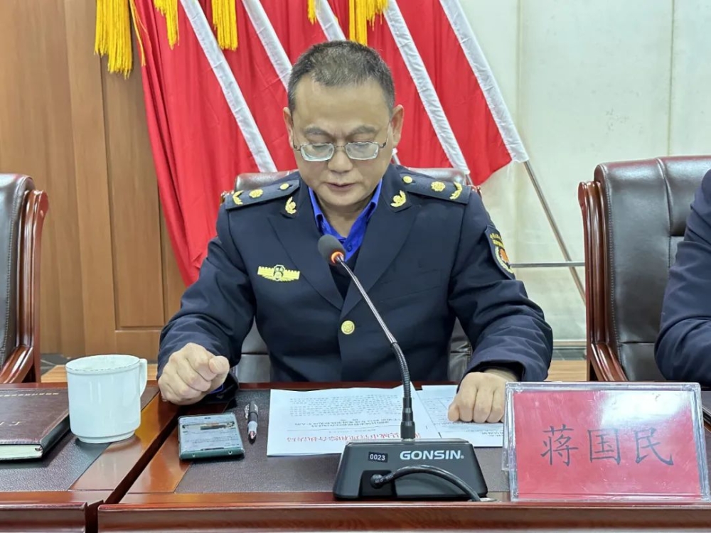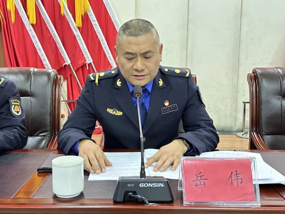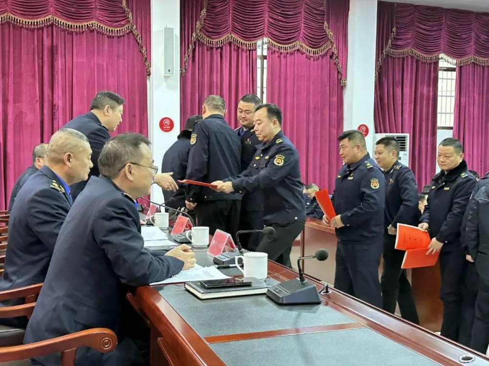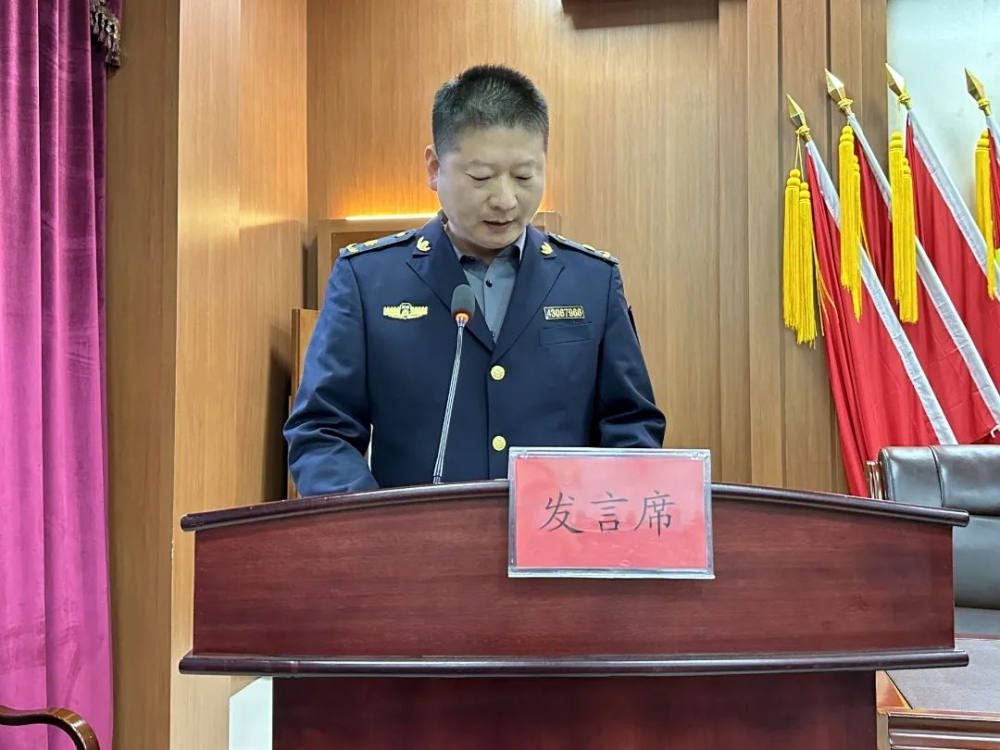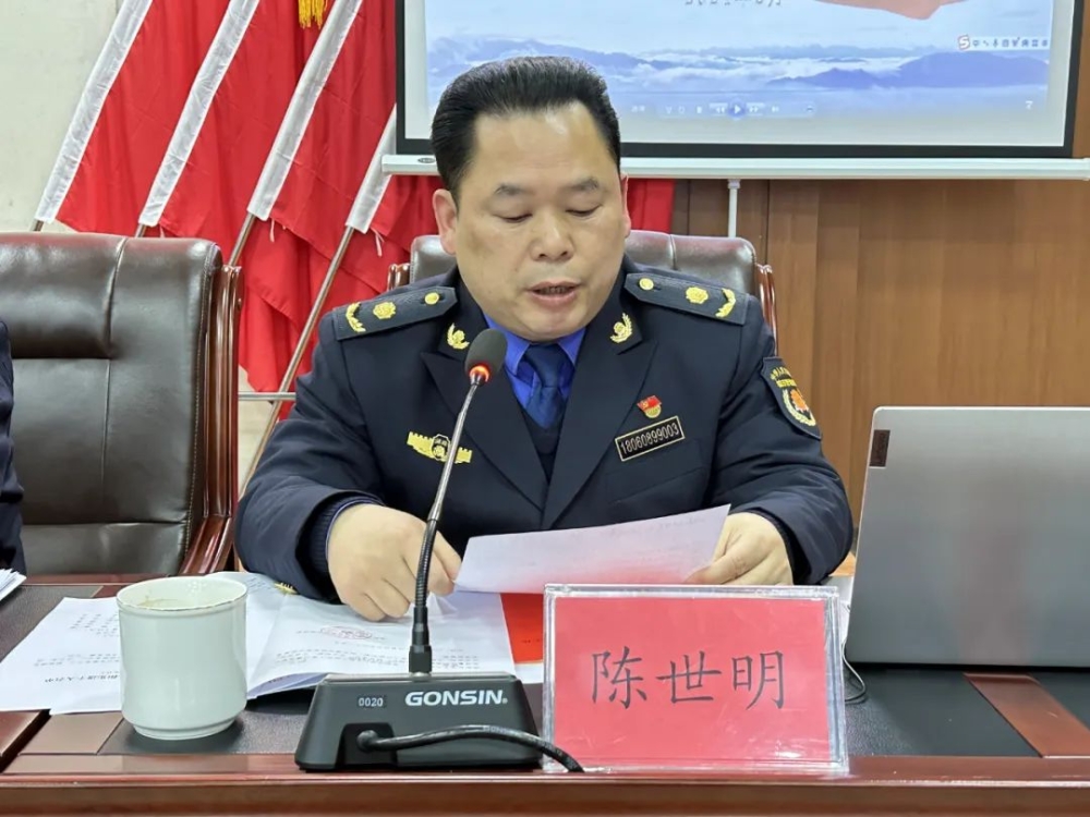 ▲陈世明大队长传达《中共湘阴县委湘阴县人民政府关于2023年度全县综合绩效等考评结果的通报》