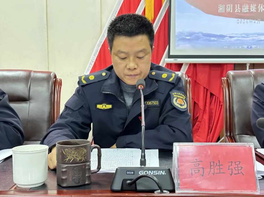▲高胜强副局长传达学习湘阴县高质量发展暨县乡村负责干部真抓实干动员大会、湘阴县党务工作会议精神