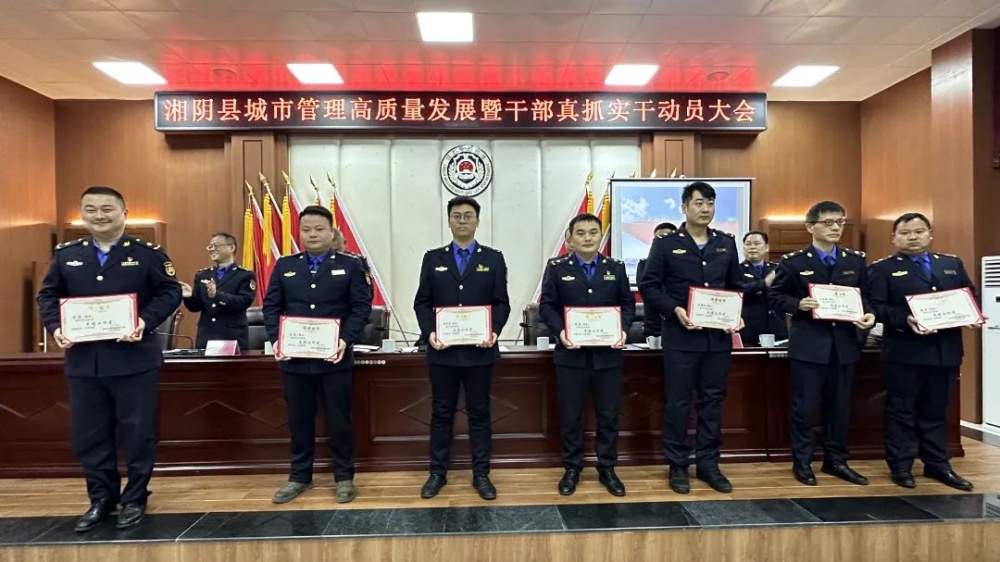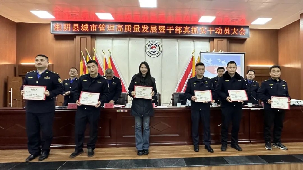 ▲蒋国民副局长宣读《湘阴县城市管理和综合执法局关于表彰2023年度先进集体和先进个人的决定》