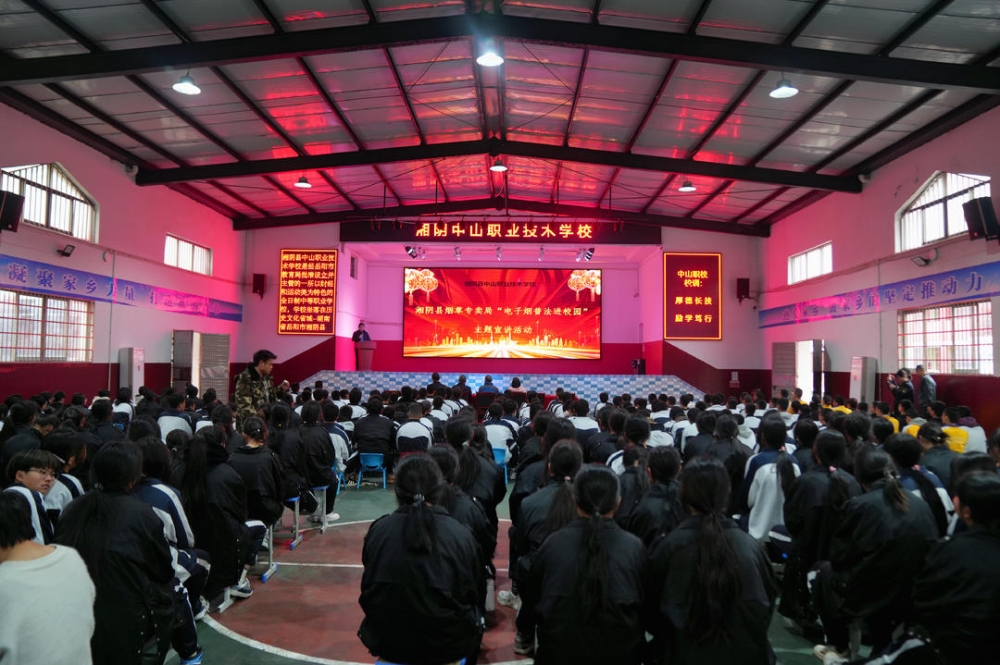 近日,湘阴县中山职业技术学校大礼堂内,一堂生动、特别的安全教育课让同学们听得津津有味。当日,湘阴县烟草专卖局以《拒绝电子烟,守护少年的你》开展专题讲座,做好普法宣传,护航青少年健康成长。