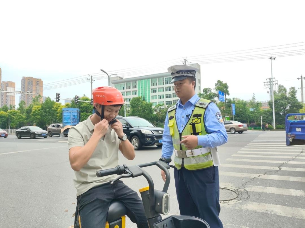 为进一步强化道路交通安全管理,提高摩托车、电动车驾乘人员头盔佩戴率。5月10日,县交警大队开展“一盔一带”专项整治行动。