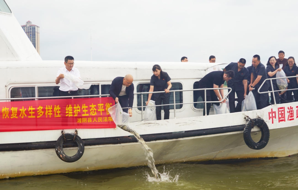 近日,湘阴县人民法院联合多部门在湘江流域湘阴南门口码头开展公益诉讼案的增殖放流活动。