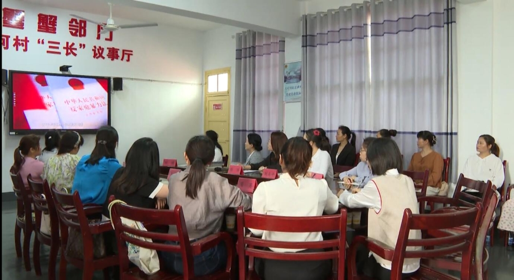 6月4日,省妇联在鹤龙湖镇新河村组织集中收听收看全省妇联系统基层执委集中培训第四课视频《妇女维权,撑起安全保护伞》。