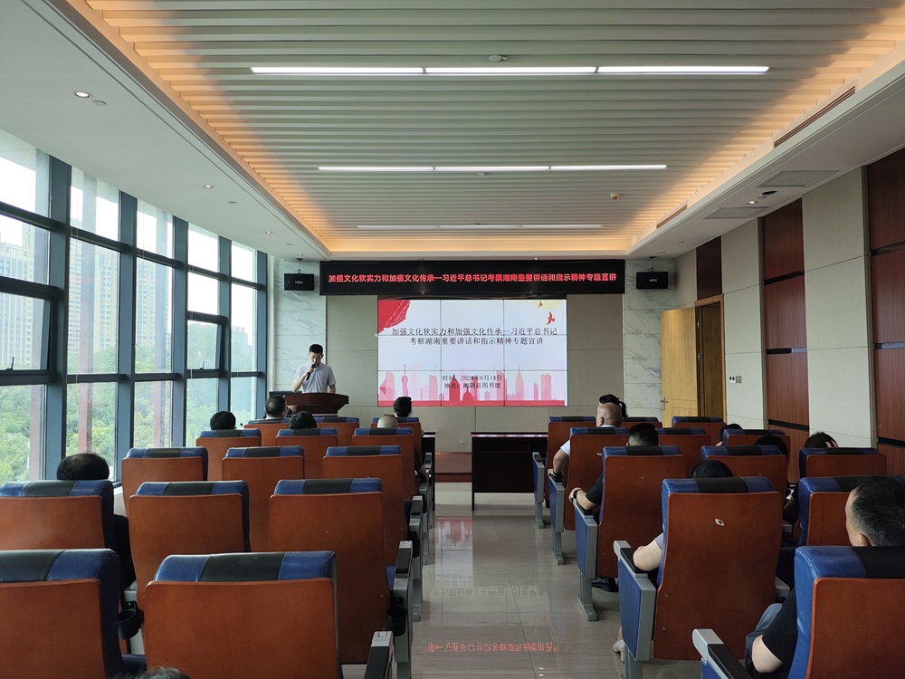 工作人员以“增强湖湘文化软实力 更好担负起新的文化使命”为主题,对习近平总书记考察湖南重要讲话和指示精神作了深入阐释、全面解读,并结合自身工作实际,就如何加强科技创新和增强文化软实力展开交流。