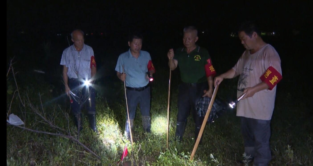 一双雨鞋、一根木棍、一个手电筒和一面锣,这就是防汛干部开展工作需要的行头。7月3日晚9点,在鹤龙湖镇仁和村菱角拐防洪堤段,记者看到,鹤龙湖镇仁和村菱角拐防洪战斗营营长谭志和4名巡堤人员手拿木棍和手电筒,一脚深一脚浅地在堤脚进行巡堤查险。