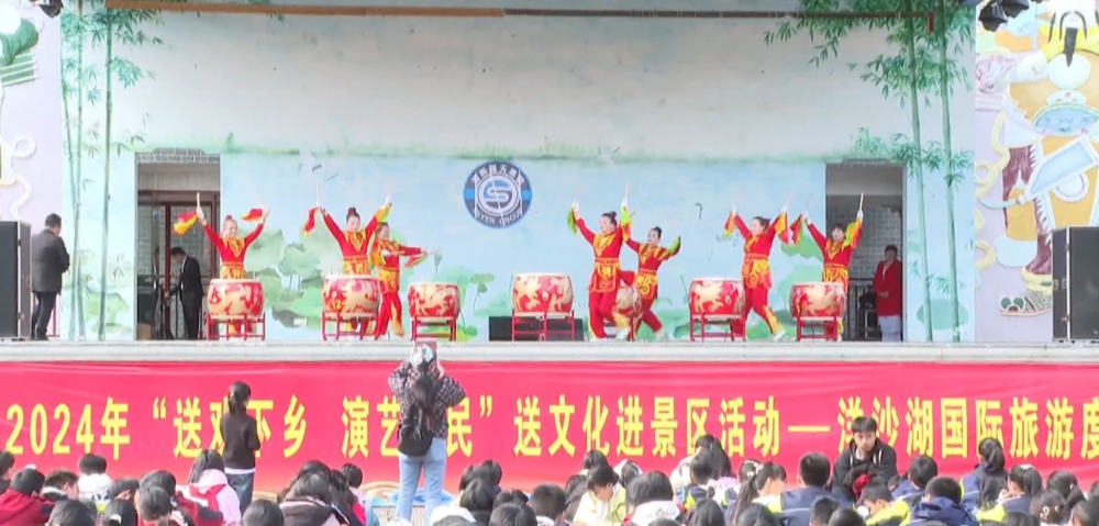 11月27日,2024年送戏进景区文化惠民活动在4A级景区—洋沙湖旅游景区鸣锣开演,来自岳阳县各中学的1076名学生参加。