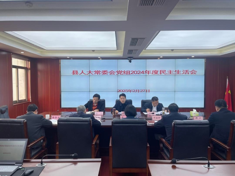 2月27日,县人大常委会党组召开2024年度民主生活会。县人大常委会主任邓淼主持并讲话,全体党组班子成员参加,县人大常委会副主任陶娜列席会议。县委指导组有关同志到会指导。