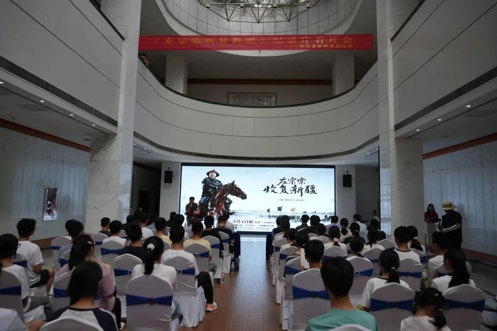 8月7日下午,湘阴县图书馆内掌声雷动。大型历史人文纪录片《左宗棠收复新疆》故乡看片会在此举行。左宗棠学校40余名师生代表与专家学者齐聚左公故里,共同重温那段捍卫祖国山河的壮阔史诗。县委常委、宣传部部长陈剑龙出席活动。