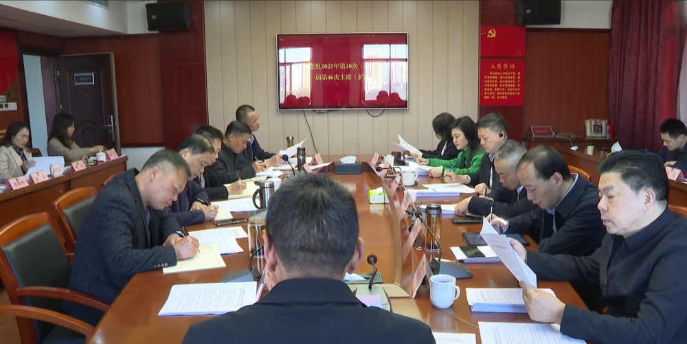 11月26日,县政协主席杨革新主持召开县政协党组2025年第10次(扩大)会议、十一届委员会第46次主席(扩大)会议。县政协副主席周学斌、胡莎丽、徐介民,秘书长邵建兵参加。