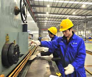 落户县工业园的湖南元亨科技发展有限公司是一家集研发、生产、销售和服务于一体的冷却塔和空气能中央空调专业企业,产品畅销全国各地。图为公司生产车间一角。