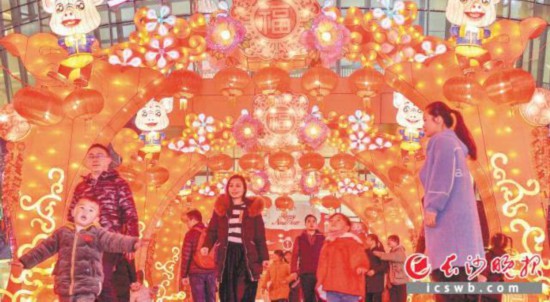 昨晚,步步高·梅溪新天地广场张灯结彩,市民们在绚丽的灯展里穿梭、拍照,呈现出一片喜庆祥和的节日氛围。