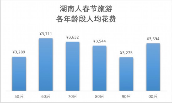 报告显示,虽然70 后游客占比不高,却是最舍得花钱的人群,根据携程跟团游和自由行数据, 70 后游客春节人均花费均超过了4000 元。