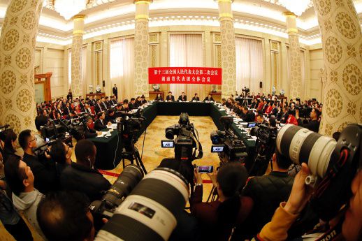 3月7日下午,北京。人民大会堂湖南厅,92家中外媒体聚焦湖南代表团开放日,满眼皆是“国际范”,不同肤色、不同语言,“长枪短炮”、百般武艺,推开了世界了解湖南的窗。