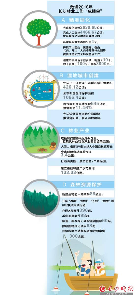 据了解,长沙现有林地面积60.52万公顷,森林覆盖率提升至54.95%。2018年全市新增1家省级森林公园。长沙现有古树名木6324株,自然保护区17个,分布有国家一级重点保护植物28种,国家一级、二级重点保护动物分别为4种、40种。(记者 钱娟)