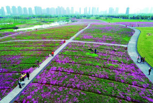 4月4日,长沙洋湖湿地公园,市民在花海漫步。近期,随着天气日渐转暖,该公园里的百亩芝樱花进入盛花期,放眼望去,美轮美奂。湖南日报记者 李健 摄