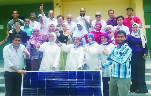 由于太阳能光伏产业在埃及是一张“白纸”,中方人员在培训时要做到详尽细致,除理论学习外,还有视频教学,再结合实际操作。1个多月里,中方技术人员白天忙于设备调试、上课教学,晚上回到住地,还要根据当天教学的情况,重新编辑、调整课件,设计试题,确保学生真正学进去。