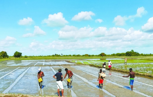 2019年,马达加斯加,工作人员在田间播种。(资料图片) 通讯员 摄